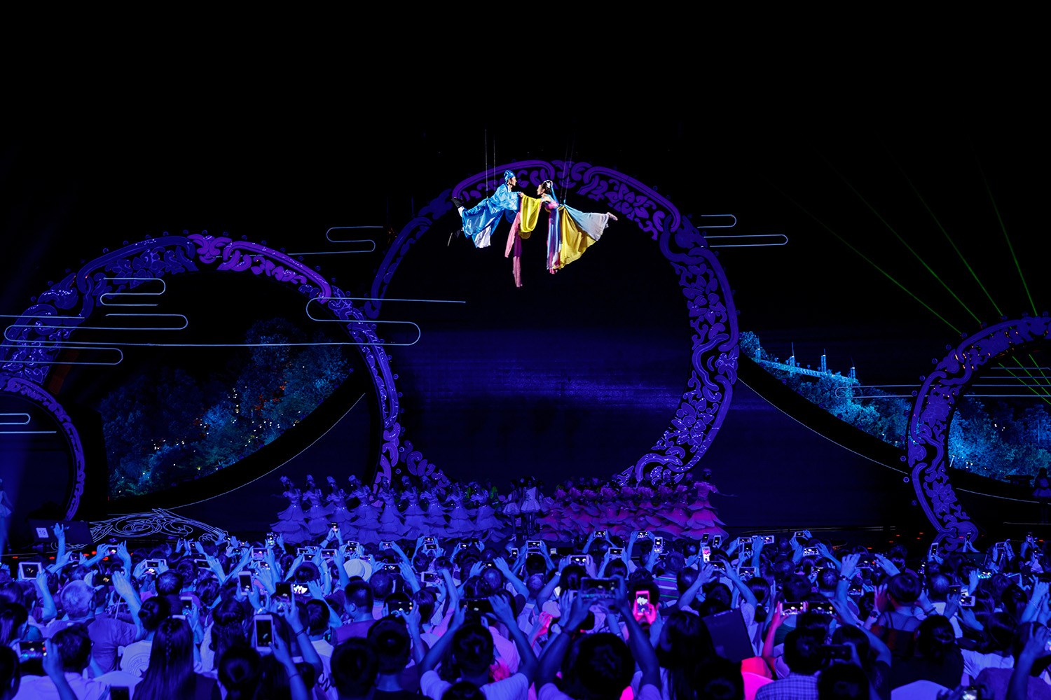 在弘揚傳統文化方面,紅豆集團一直都身體力行。紅豆七夕節的成功舉辦和多年堅持,便是紅豆集團弘揚傳統文化的有力見證。七夕節從最初在紅豆人的首倡和推動下,到如今成為了“我們的節日”,得到年輕人的追捧。一路走來,紅豆集團“用紅豆抵抗玫瑰”的執著堅定,受到社會各界的廣泛贊譽。此次紅豆集團攜手央視綜藝舉辦的七夕特別節目,也將傳統文化的元素嵌入了舞臺藝術和節目形式的各個角落中。伴隨著音樂的慢慢響起,由舞蹈演員扮演的“牛郎”和“織女”從舞臺的兩側慢慢飛向中間,“相聚團圓”?,F場將古老的傳說——“牛郎織女鵲橋相會”的美麗畫面真實呈現在了觀眾的面前。