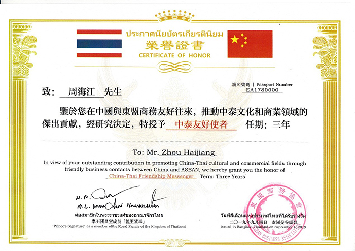 2019年9月4日,紅豆集團紅豆家紡公司應邀參加2019年東盟經貿發展(曼谷)合作論壇,紅豆家紡公司總經理錢振宇先生帶領一行人員參加此次會議,紅豆家紡首次走出國門,詮釋對健康水碾、舒適生活的全新定義,從而引領健康睡眠的需求。在此次會議上,紅豆家紡公司總經理向泰國旺猜親王進貢紅豆乳膠枕、紅豆襯衫,獲得皇室旺猜親王的高度評價,并授予紅豆集團紅豆家紡產品為“泰國皇室御用產品”。同時,錢振宇先生代表紅豆集團董事局主席兼CEO周海江,接受中泰國王勛章,中泰友好使者榮譽。