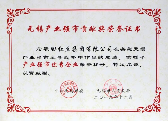 12月20日,無錫市政府召開無錫市產業強市貢獻獎、科技創新貢獻獎頒獎大會。會上,紅豆集團榮獲“產業強市優秀企業”稱號,紅豆集團董事局主席兼CEO周海江出席會議并接受頒獎。此次獲獎是對紅豆集團在推動“強富美高”新無錫建設中所作貢獻的肯定。