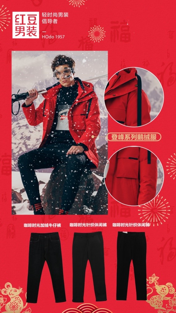 新年新裝,買紅豆男裝。1月12日-2月3日,紅豆男裝春節福利大放送,年貨節羽絨服限時巨劃算,新春爆款羽絨服299元起,更有線下滿送活動驚喜不斷。紅豆男裝狂歡啟動,與你共享鴻運新年!