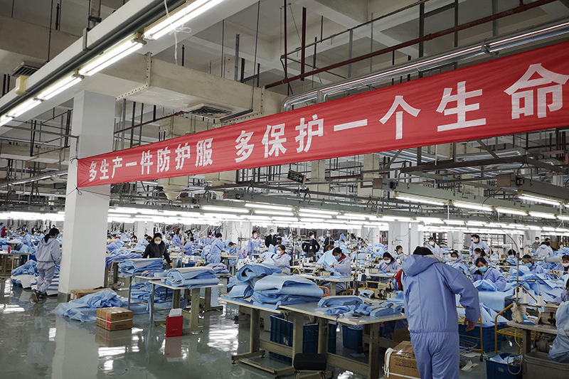 面對戰疫前沿對防護服的極速需求,急國家所急,紅豆股份公司還在現有經營許可范圍內上馬了民用防護服,短短十多日就日產迅提速到2月17日的50000件,為隨后醫用防護服的快速生產提供成熟的技術加持。