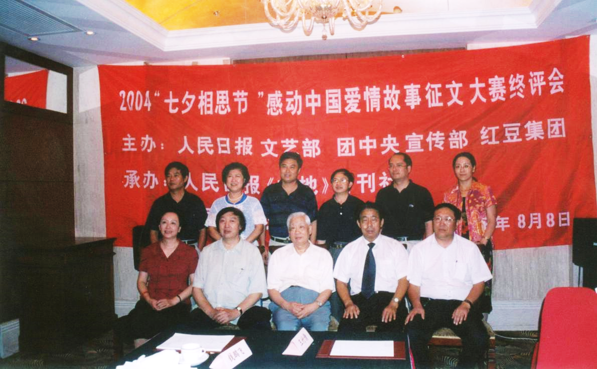 2004年第四屆紅豆七夕節(jié)“感動中國的愛情故事征文大賽”,趙本夫(后排左一)擔任評委