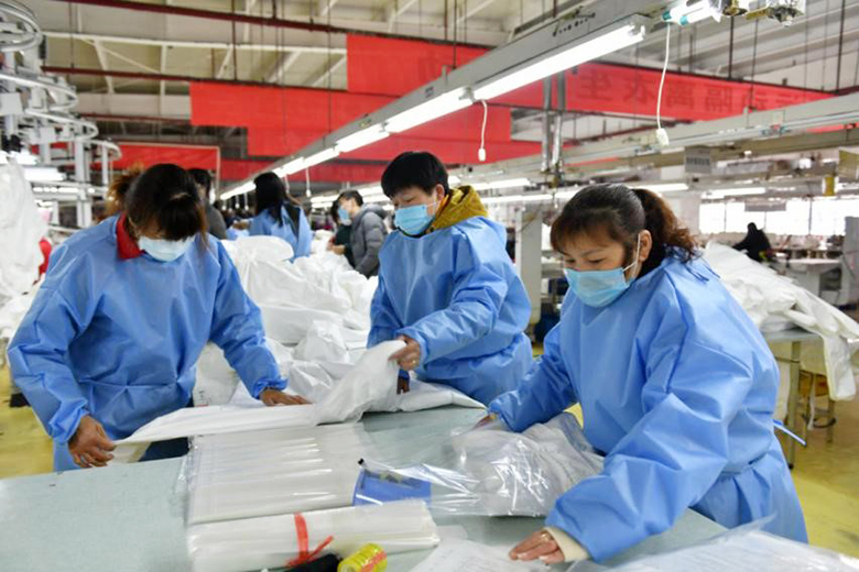 2月5日早上項目正式啟動,在高品亞的帶領下,公司克服了春節期間,再加上防疫特殊時期交通不便、原料緊缺等種種困難,迅速買入設備、原材料8噸,召回本地熟練工人,快速進行隔離衣的生產,預計達產后將生產隔離衣1萬件每天。