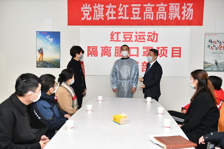 “生產隔離服,時間緊,任務重,關系到疫情防控效力和一線醫護人員以及人民群眾生命安全,容不得絲毫猶豫和懈怠,黨員干部首先成立突擊隊,要率先發揮黨員的先鋒模范作用,擔起這個重任!”紅豆運動裝公司黨支部書記、總經理高品亞作為隔離服生產線指揮領導小組組長,提出隔離服生產要求。